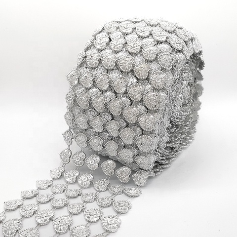 الأزياء 8 صف الفضة تصفيح الترتر البلاستيك ورقة حجر الراين زهرة نقل بكرة قماش شبكي تريم
