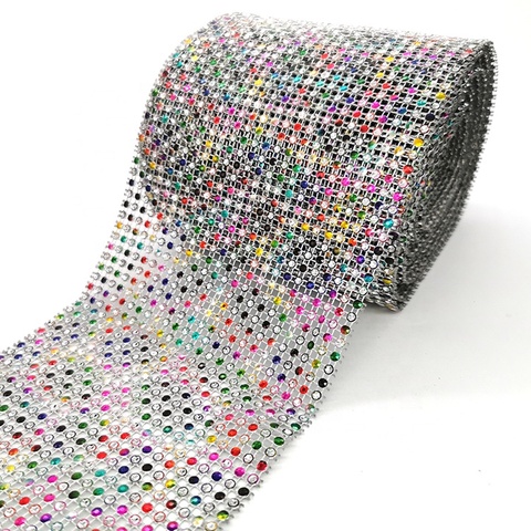 الصانع سعر 24 صفوف 10 ساحة التدرج قوس قزح متعدد الألوان الراين شبكة لفة الملابس التبعي الماس الشريط التشذيب