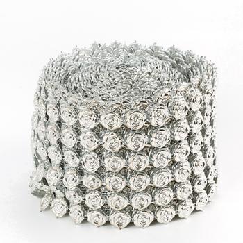10 yards/rulo parti düğün süslemeleri 6 satır çiçek şekli plastik çiçek elmas şerit rulo yapay elmas ağ diy dekorasyon